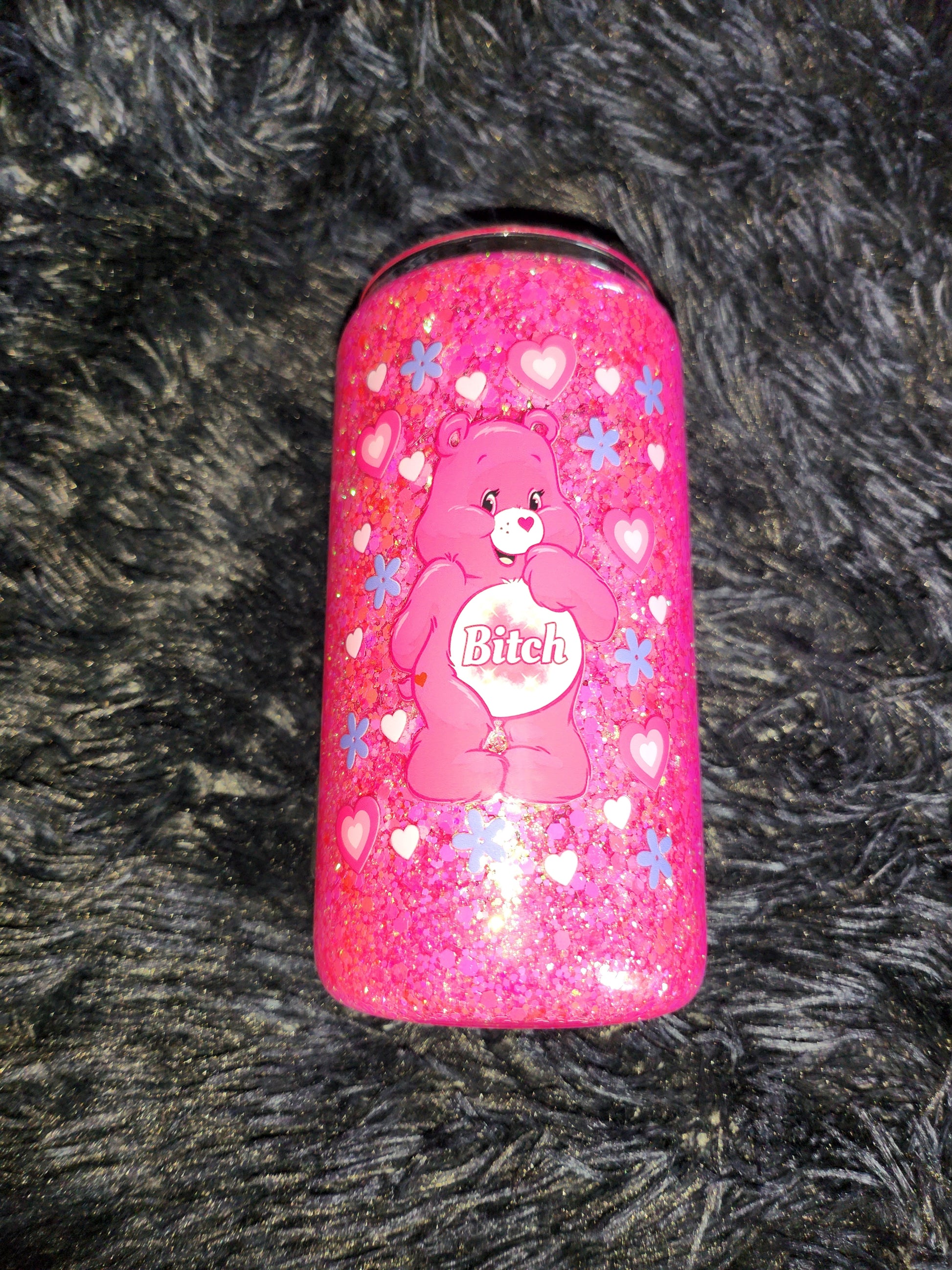 RTS - Pink Swear Bear SNOW GLOBE 16oz Glass Tumbler