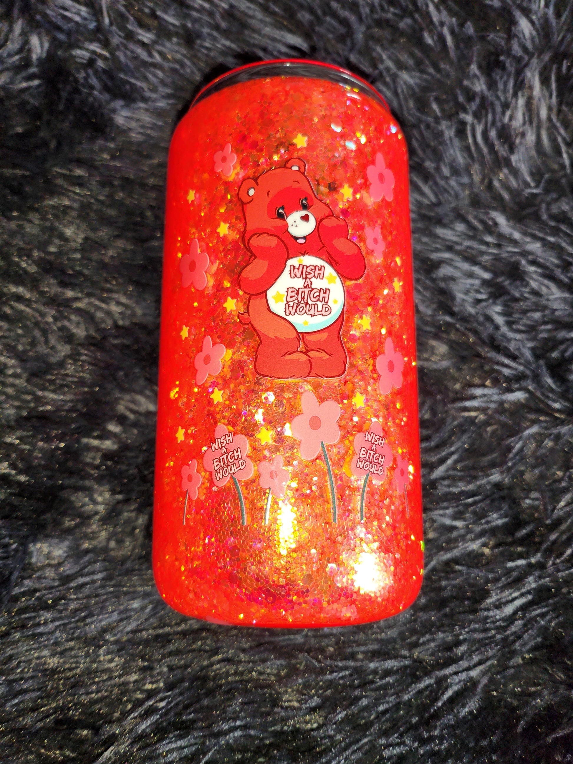 RTS - Red Swear Bear SNOW GLOBE 16oz Glass Tumbler