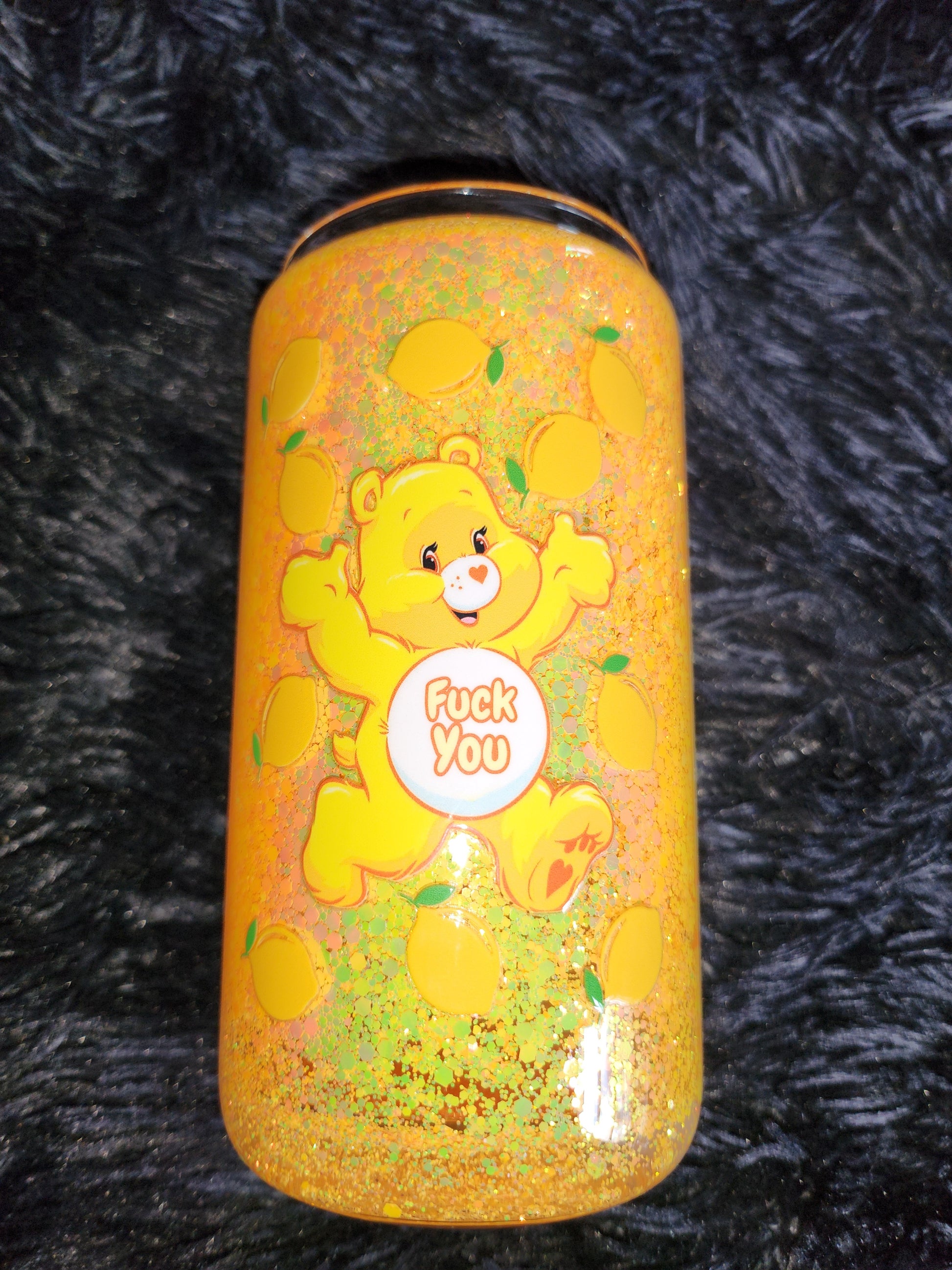 RTS - Yellow Swear Bear SNOW GLOBE 16oz Glass Tumbler